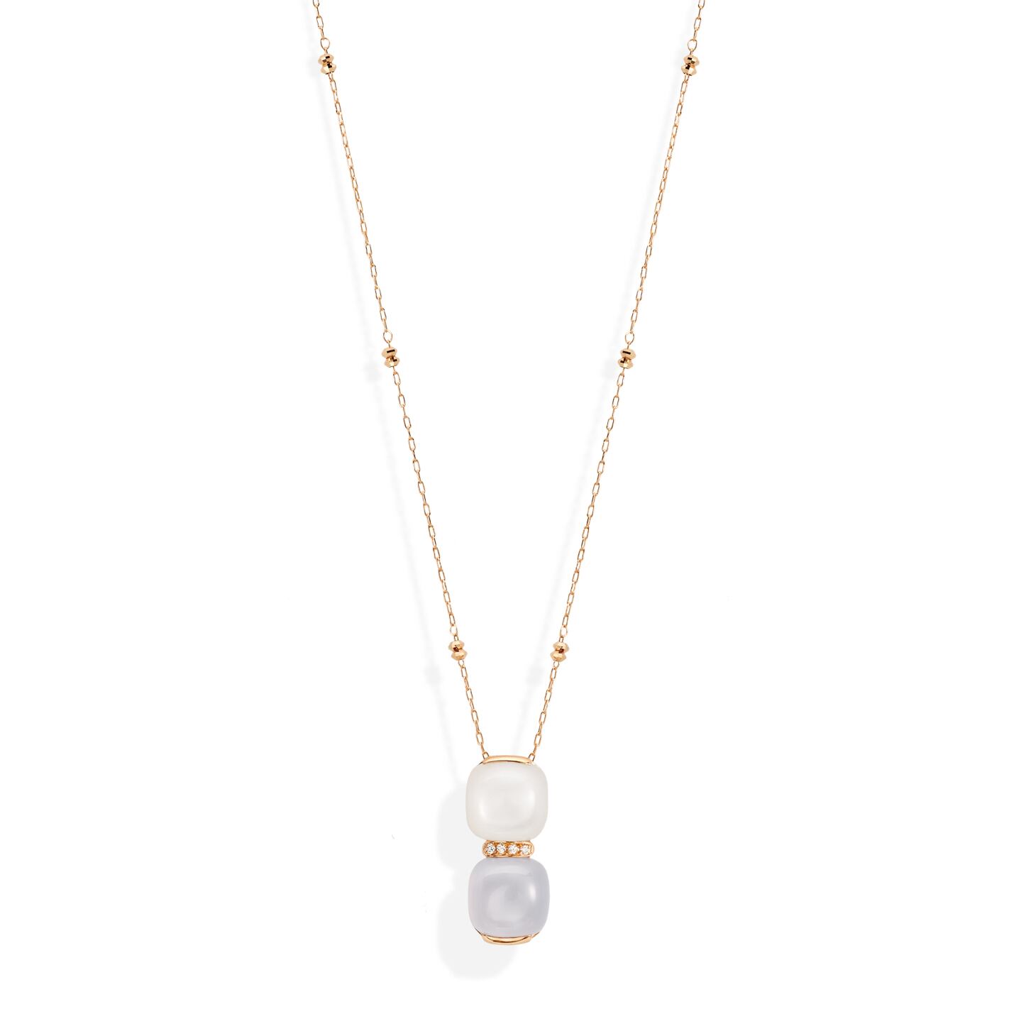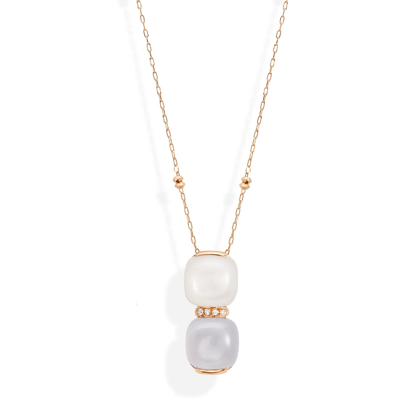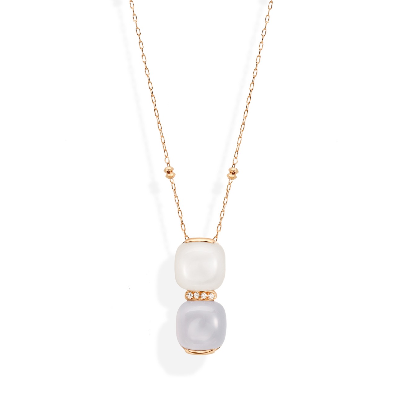 カルセドニーとムーンストーンを重ね合わせたペンダント。
