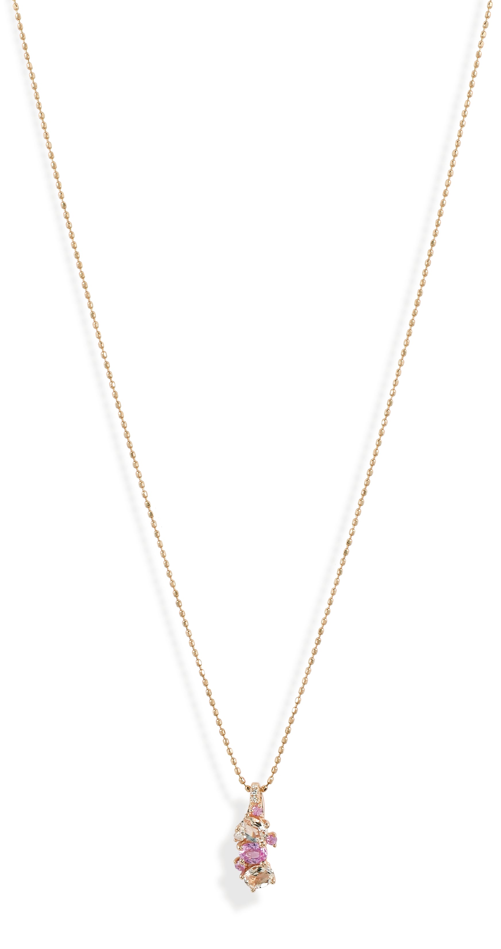 ピンクサファイアを取り巻く、柔らかな透明色が優しいモルガナイト。