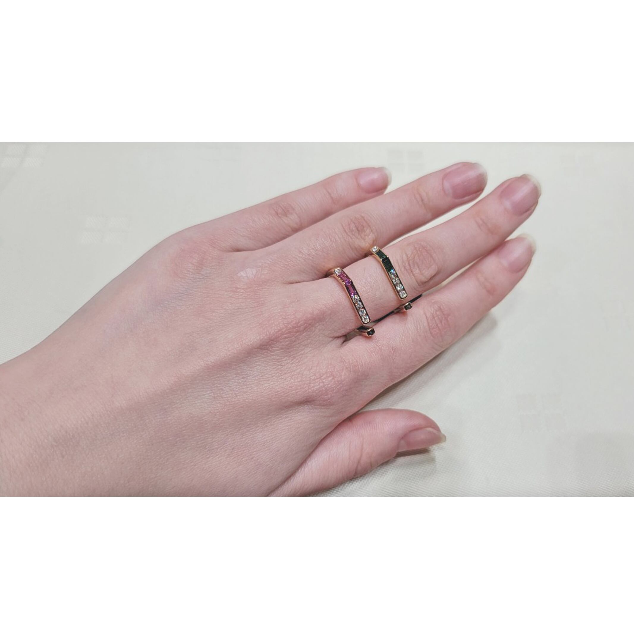 身に着けると、ピンクサファイアとダイヤモンドの輝きが指の側面まできれいに彩ります。